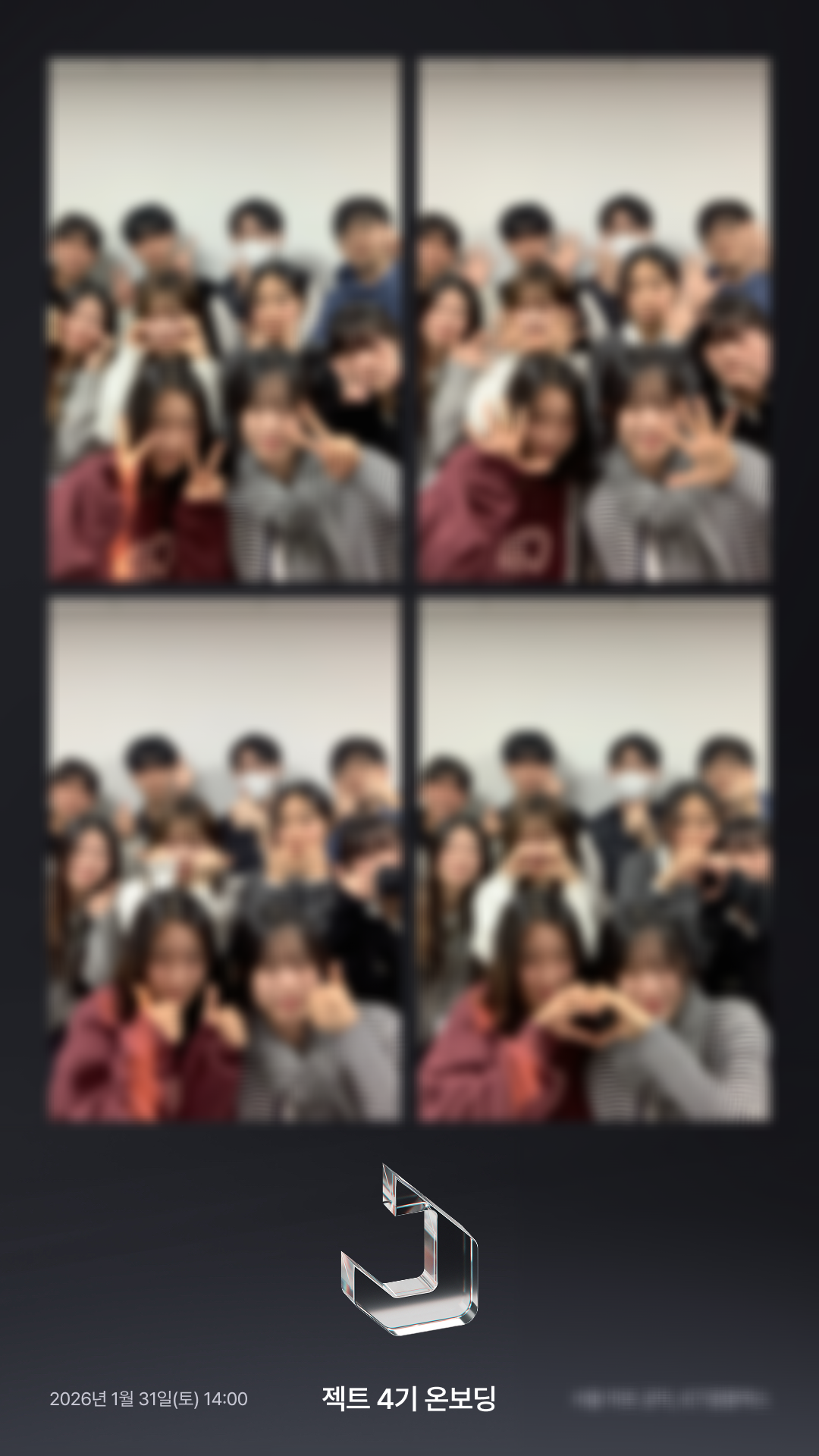 안녕하세요! 요즘 본업 외에도 자신의 성장을 위해 사이드 프로젝트를 찾는 분들이 정말 많으시죠? 저 역시 성장에 대한 갈증이 있던 찰나 드디어 원하던 IT 사이드 프로젝트 동아리 '젝트' 4기에 합격하게 되었습니다! 처음 지원서를 쓸 때의 떨림이 엊그제 같은데 벌써 온보딩을 마치고 팀 배정까지하고 1주차 회의까지 끝났어요... 시간이 너무 빠르게 지나가서 요새 무섭습니다. (나이가 먹어가는..)