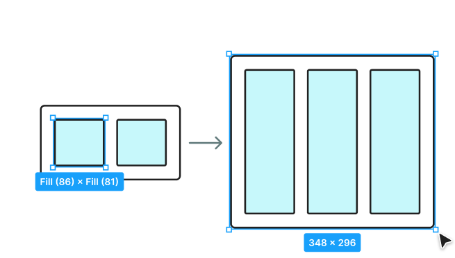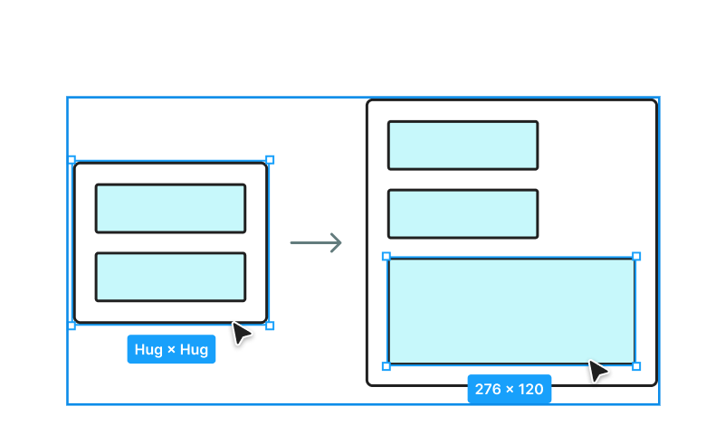 | Fill container | 부모 컨테이너의 크기에 맞춰 요소의 크기가 확장되어 컨테이너를 채우는 방식입니다. | 반응형 웹의 섹션, 컬럼, 카드 레이아웃 등 |