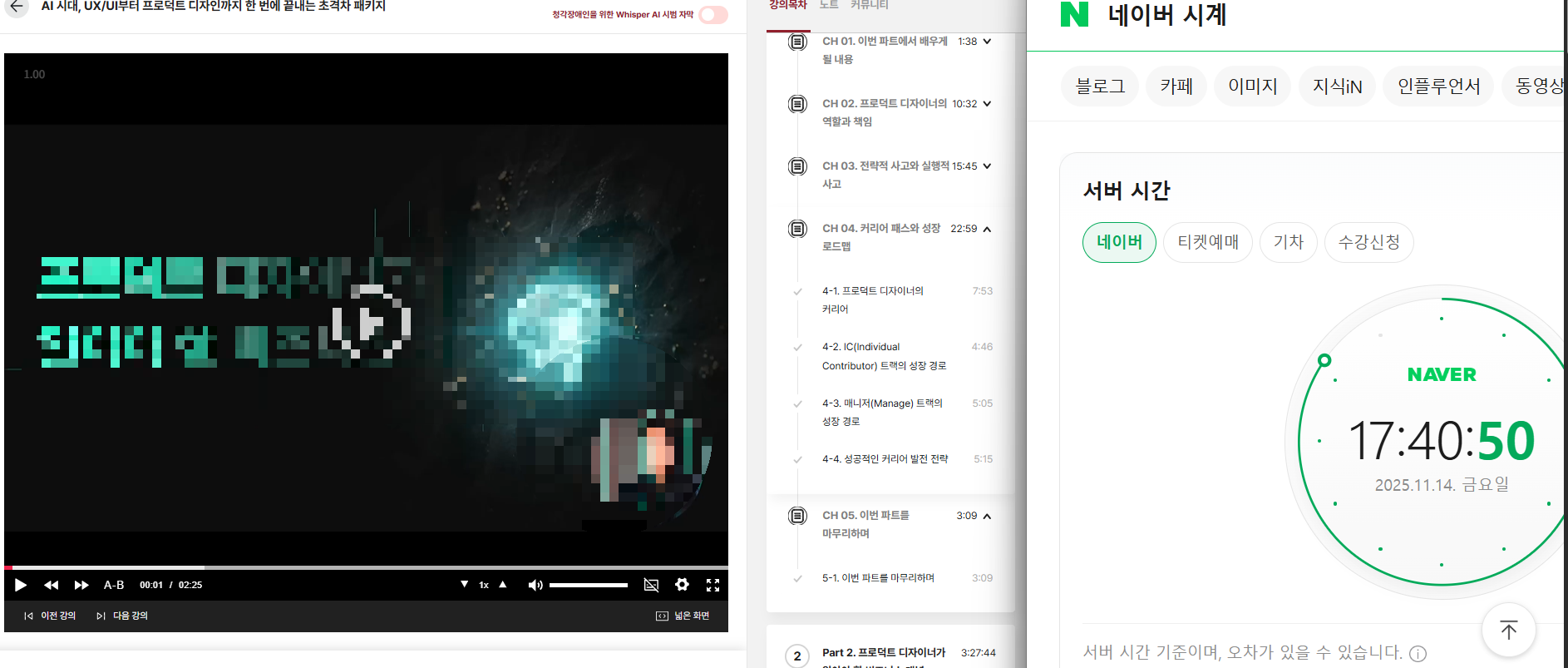 3. 1개 클립 수강 인증 사진 1장 (강의 화면 내용은 보이지 않도록 / 목록 캡처 추천)