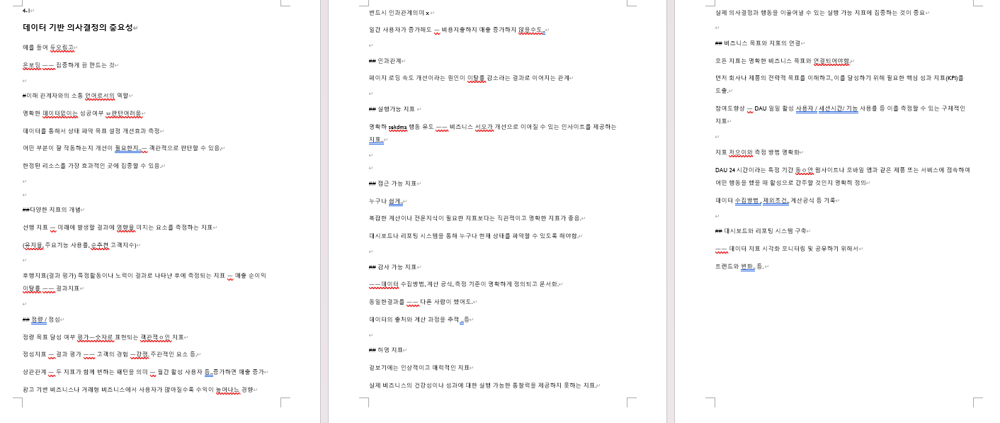오늘은 비즈니스 지표의 큰 주제에서 비즈니스 지표의 개념파트를 수강했습니다. 데이터 기반 의사결정이 중요하다는 건 이 프로덕트디자이너를 준비하시는 분들이라면 다 아는 사실이라고 생각해요. 솔직히 준비를하면서 "도대체 이 데이터를 어떻게 활용해서 프로젝트를 성공적으로 이끌어나가야되는건데?"라는 생각을 계속 가지고 있었어요. 또한, 여태까지 데이터를 얻기가 어렵다 보니 성공여부를 판단하기 어려웠고 목표 설정과 개선효과를 측정하기 굉장히 어려웠답니다. 그래서 저는 이번 기회에 앱 출시 및 운영까지 해보는 사이드프로젝트에 참여해보려고 합니다. 그리고 이 데이터의 지표가 굉장히 다양한데 선행지표와 후행지표로 나누어진다고 합니다. 선행지표는 미래에 발생할 결과에 영향을 미치는 요소를 측정하는 지표고 많이 들어봤던 유지율, 사용률, 고객지수 등을 말합니다. 그리고 후행지표는 특정활동이나 노력이 결과로 나타난 후에 측정되는 지표이고 매출 순이익, 이탈률 등이 결과지표입니다.
