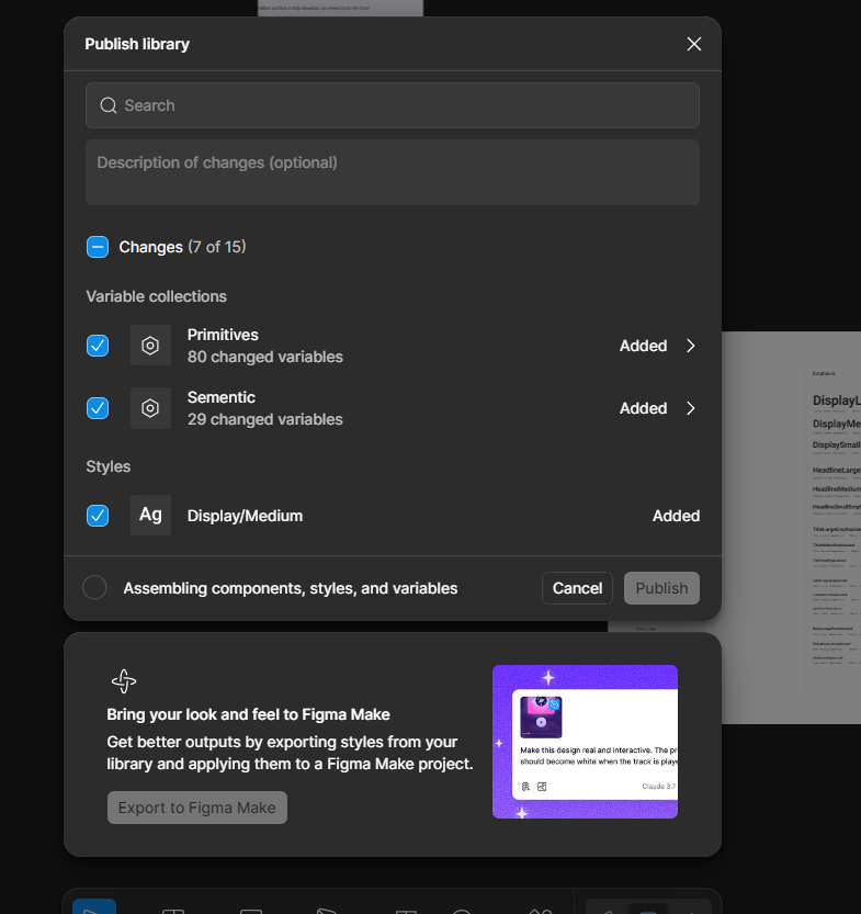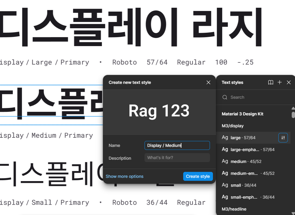 타이포그래피는 google material design system을 통해 공부했는데 이 디자인시스템에서 타이포는 inter를 쓰지만 주로 실무자들은 pretendard를 많이 활용한다고 합니다. 저도 pretendard를 많이 활용했었는데 이 pretendard 폰트가 영어와 한글의 밸런스가 맞춰져있어서 많이 활용한다고 합니다. 그 뒤 각각의 폰트 weight와 크기 등을 저장 후 텍스트 스타일로 저장하는 실습까지 하여 기존에 알고있던 개념이었지만 복습하여 확실히 익혔습니다. 그리고 마무리로 디자인시스템을 연결하는 실습까지 했는데 이 작업에선 책모양의 아이콘을 눌러 해당 페이지에서 만든 컴포넌트나 베리어블은 publish하면 다른 페이지에서도 해당 디자인시스템을 활용하여 작업할 수 있다는 점을 배웠습니다. AI 시대일수록 기본기와 판단할 수 있는 능력이 중요하다고 생각했고 직접 분석하고 만들어보면 확장해나갈 수 있다고 생각하여 기본에 충실히하도록 노력하겠습니다.