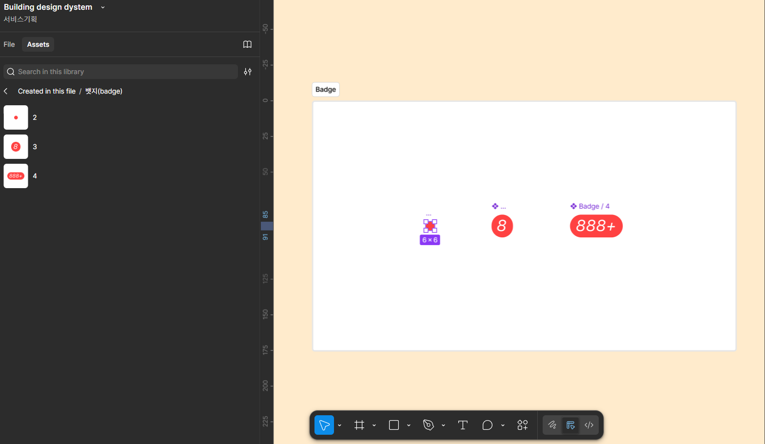 오늘은 뱃지와 버튼을 만드는 실습을 했다. 디자인시스템에서 컴포넌트를 기초부터 시작하여 만들다보니 내가 몰랏던 부분이나 property 적용하는 부분을 놓치고 있다는걸 알게되었다. 먼저 뱃지 만들기를 먼저했는데 뱃지는 상태를 숫자나 점으로 정보를 보여주는거라고 합니다.