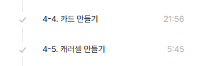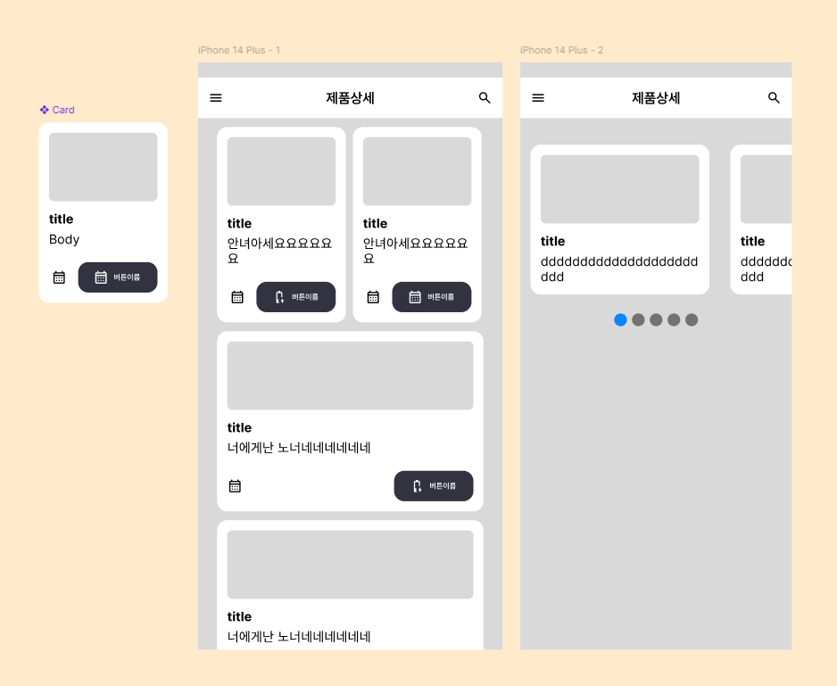 오늘은 카드와 캐러셀을 만드는 실습을 했다. 카드는 자주 만들어보긴했는데 이 카드도 대부분 컨테이너를 만들어서 오토레이아웃을 걸기보단 각각 따로따로 만들어서 효율적이지 못하게 만들었던 과거에 나에게 쓴소리를 하고싶다. 확실히 개념을 중요시 여겨야되었던게 property부분도 그렇고 컴포넌트를 이렇게 제작하니 관리하기가 정말 편리했다. 먼저 카드 만들 때 이미지영역, 제목, 본문, 버튼을 나누었고 타이틀과 본문을 묶고 다시 이미지와 묶었다. 그리고 버튼 컨테이너와의 간격을 두었다. 이렇게하니 카드 컴포넌트를 관리할 때 용이했다. 또한, 저번 시간에 했던 property로 title text, body text를 지정하여 효과적으로 관리할 수 있었고 본문이 늘어날수록 카드도 아래로 늘어나게 끔 했다. 확실히 이 오토레이아웃에서 Hug와 fill 그리고 property 부분은 매번 피그마에서 UI디자인할때마다 적용하는게 어려운 부분인거같다. 카드 디자인을 하면서 또 느꼈던 부분은 안에있는 이미지 영역에 radius값이 바깥영역보다 작게 지정해야 더 자연스러운 걸 알게되었다. 기존에는 바깥영역을 감싸는 부분과 이미지영역 부분의 radius를 똑같이 했어서 어색한 부분이 있었는데 그 이유를 잘 몰랐었다. 이번 강의에서 직접 디자인하며 여러 radius 값을 적용해보니 체감이 되었다. 다음에 카드 디자인을 할때 신경쓰며 radius값을 적용할 것 같다.
